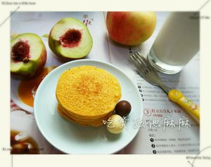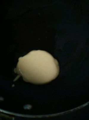 平底锅刷一点食用油,用勺子舀面糊倒在锅里,让面糊自由摊开