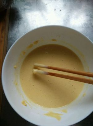 将面糊搅拌均匀没有颗粒,可以流动为止