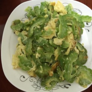 放油锅,可以稍微多放点油,把搅拌好的苦瓜倒入锅中,两边煎至金黄色就可以出锅了。