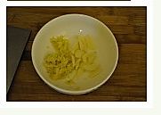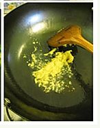 老姜去皮,刨成姜末,蒜头去衣,切小片。