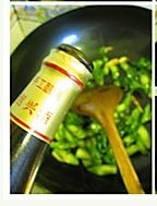 下油热锅,倒入姜汁爆炒,滚烫的油带出姜汁的香味,把姜油淋在芥蓝上即可。