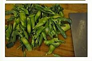 放油热锅,5成热时放入蒜头爆香,放白糖,放入芥蓝大火爆炒至断生,放一点生抽,一点点花雕酒,翻炒均匀,加入食盐调味即可。
