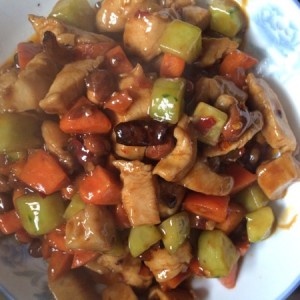鸡胸,胡萝卜,黄瓜,分别切成丁。切好的鸡丁放少许盐、料酒、淀粉进行腌制。