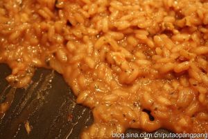 这是第三次加汤汁,收干后的样子,米还是有点生的;于是再次加入250毫升蔬菜精;