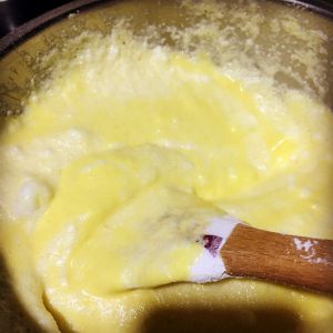 把面粉和黄色蛋糊混合,面粉分三次加,搅拌时候上下搅拌不要画圈,以免消泡。将搅拌好的面糊分两次加入白色蛋糊,上下搅拌均匀。