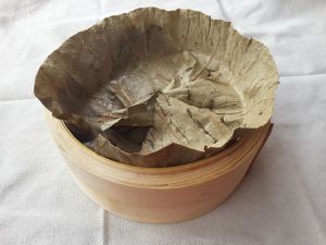 5,把荷叶放入蒸屉上。
