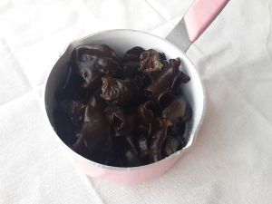 3,木耳泡发后去根洗干净。