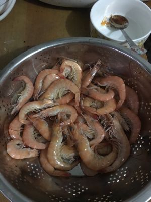 借这个时间,锅中烧水,水开后将明虾放入水中焯一下,变色即可捞出。放一旁待用。