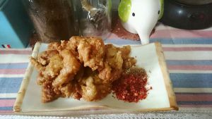 辣椒面里面放少许味精和盐,孜然粉可做蘸料!