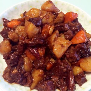 放入焯过水的牛肉 加料酒 生抽 老抽 一勺盐 小火炖一个半小时
