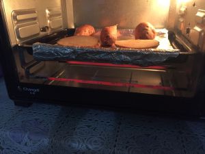 上下火 220度烤四十分钟 可根据地瓜大小自定义 烤20分钟拿出来翻面
