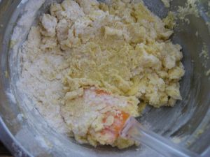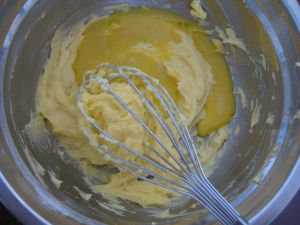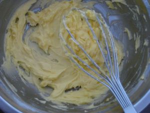 鸡蛋打散,取20克全蛋液加入黄油中,打发到完全融合。