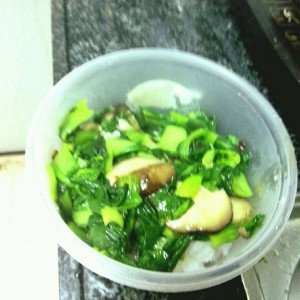 放入青菜,炒出水分,放入半勺浓汤宝,爆炒出锅。