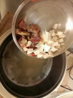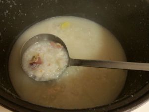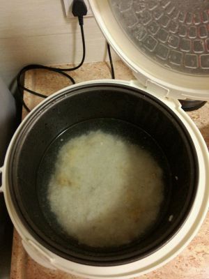剩饭来的,用水泡了一早上,这样煮起来更省时间