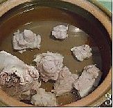 将适量清水放入煲内,放入猪骨头、霸王花、蜜枣。