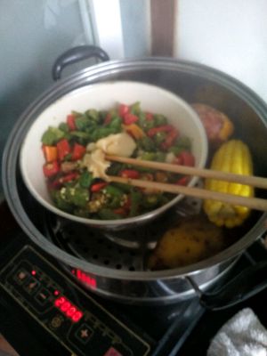 先把水烧开,在蒸,顺便洗红薯,宝宝爱吃。