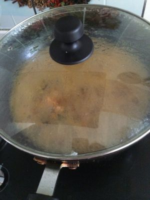 加入高汤(煮鸡肉的汤)闷过鸡肉,大火煮至汤汁变少,喜欢汤汁多的可以少煮一会儿,鸡肉是已经炖耙了的,不需要再煮很久。