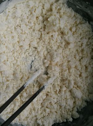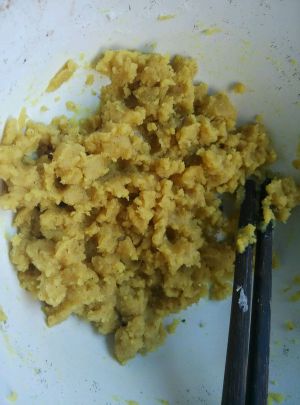 将热油到入面粉调料混合物中搅拌,油太少,杯具T^T