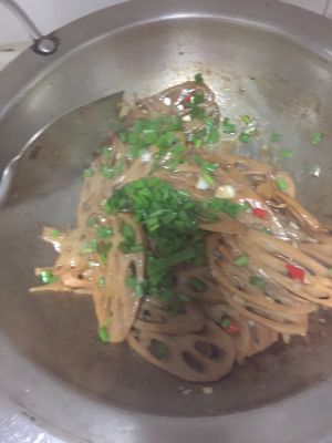 倒入切好的藕片。