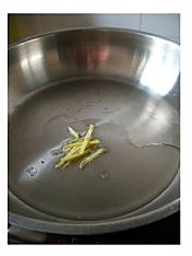 锅内倒入一点点油,放入姜丝爆出香味儿 。