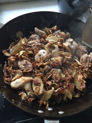 熬姜剩下的油可以接着使用,如果不够➕少许油,调制大火加入生鸭肉翻炒