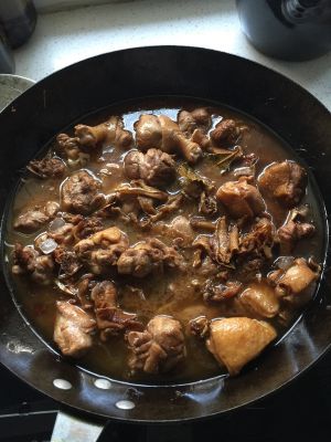 最后加入冰糖,少许,将水末过鸭肉。大火直到开锅调成文火炖制。30分钟。➕盐➕鸡精闷一下出锅。装盘