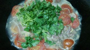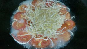 水开后放入番茄滚3分钟,然后加入豆芽煮两分钟。