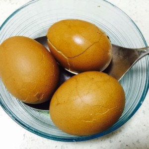 完工。一般早上起来我会整锅再煮热一次,经过一晚上味道已经渗入鸡蛋。捞两个出来吃,剩余的不管,再继续泡一天晚上回来捞出放保鲜盒入冰箱,以后每天早上拿两个入电饭煲蒸屉五分钟就热透了。方便好吃。
