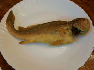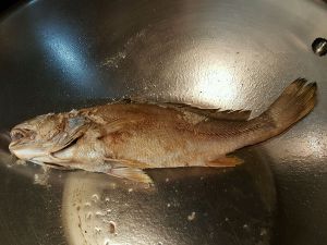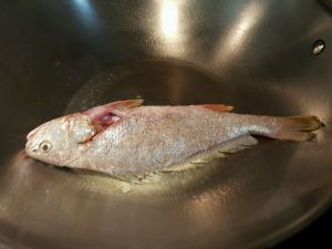煎鱼要煎完一面变金黄色再翻一面,不能翻来翻去,鱼皮会破损不好看