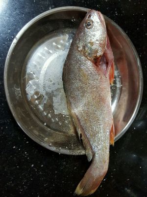 刮鱼鳞,开肚去除内脏!用水冲下就好,拿厨房纸吸干鱼面水份,鱼不能泡淡水会霉肉的,要吃是才刮鳞才能保持肉质,用盐同胡椒粉搽鱼身腌制半小时!