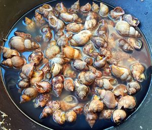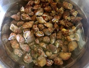 香螺买回来洗净用清水浸泡撒入适量盐让它吐沙子这样吃起来口感更好