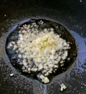 在放蒜蓉辣椒酱、料酒、糖炒制入味