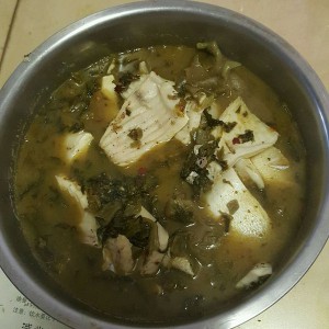加入料包,把鱼片儿放入,煮三到五分钟,撇去浮末。