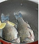 热锅凉油,放入姜片爆香(可以提前用姜片擦锅,这样可以有效避免鱼皮粘锅),放入鲫鱼,煎至鱼皮微露金黄色,翻面,同样煎至金黄色(煎鱼可以去腥和定形,不被煮烂。)