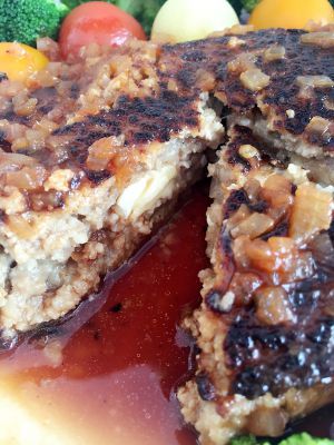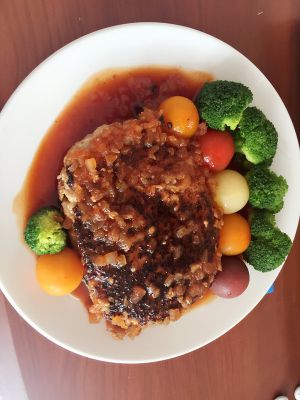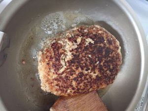 酱汁翻过一会儿就可以关火。摆好汉堡,淋上酱汁~开动了!