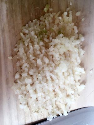肉末里加入切好的2/3的洋葱末,一个鸡蛋,适量盐和胡椒粉,一份汉堡调料(没有汉堡调料请按贴士替代)。搅拌到起筋。