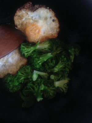蛋盛出或挪至一边直接倒入西兰花翻炒半分钟、撒盐和黑胡椒粉就好了