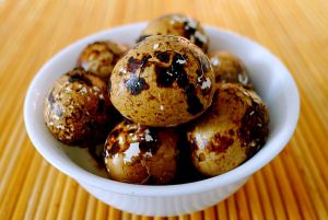换清水将鹌鹑蛋和材料放进锅内,十三香多放一些,茶叶一小把,酱油让水颜色变深,盐多放,八角两块。水烧开,尝一下汤,咸度要达到尝一口特别的咸的感觉,这样鹌鹑蛋才能入味,电饭煲保温一夜,第二天早上就可以吃了,茶叶蛋晾凉后口感更佳。