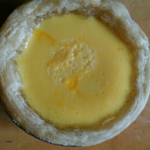 将蛋液倒到预热好的蛋挞皮里,烤箱十五分钟就可以