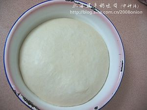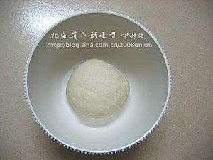 将材料A中酵母粉和鲜奶混合溶化成液态,再将A所有材料混合揉和成团,放入盆内发酵至2倍大。(后来看到爱和自由对中种法的理解,中种最好发酵到4~5倍大)