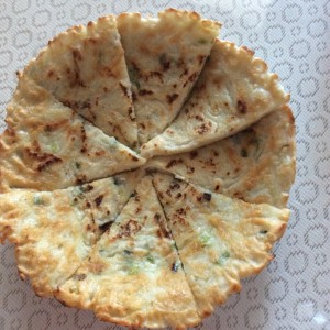 因为土豆饼是咸的,所以放葱花、盐、花椒粉,调味一下