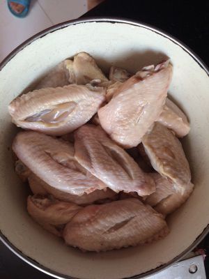 把鸡翅洗干净,除了蜂蜜,都加入鸡翅里,搅拌均匀放入冰箱腌制半天