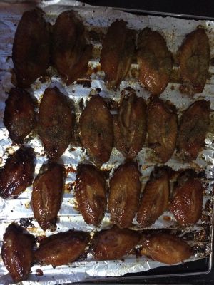 拿出翻面,在刷上蜂蜜,200度,10分钟,就好了,一半撒上孜然,就是孜然味,一半就是蜜汁味