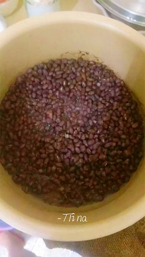 挑拣掉坏的豆子,然后洗净浸泡一天(因为到时来煮的话比较容易熟还有就是比较容易磨)。
