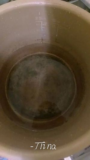 煮好后,再拿一个器具往里面倒进少许的凉白开(这个是为了后面的大工程做准备的)
