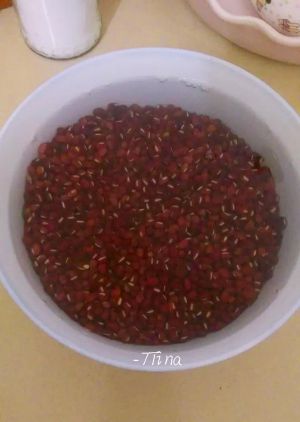 浸泡后,加水量的话只要超过红豆两三厘米就ok了,熬好后将水分倒掉只剩红豆。