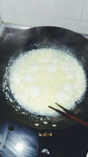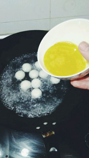 汤圆煮好后(煮好的汤圆会浮在水面),倒入打散的鸡蛋,并用筷子慢慢搅拌