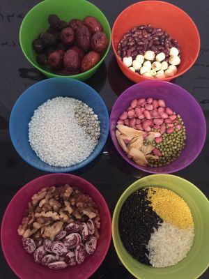 全部洗净放入电高压锅。。水和材料比例3:1。。按煮粥档。。好了之后拌入冰糖。。OK了