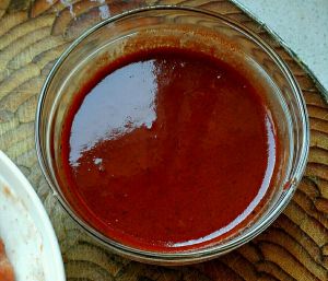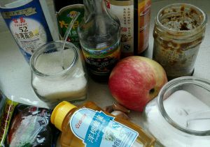 苹果和蒜捣成泥,将所有材料(除了蜂蜜,用来刷表面)倒入容器中开小火熬制成酱汁,期间要不断搅拌防止粘锅。