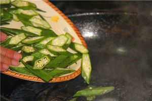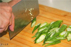 锅里放水烧开,放入一茶匙盐,然后将切好的秋葵倒入锅内。